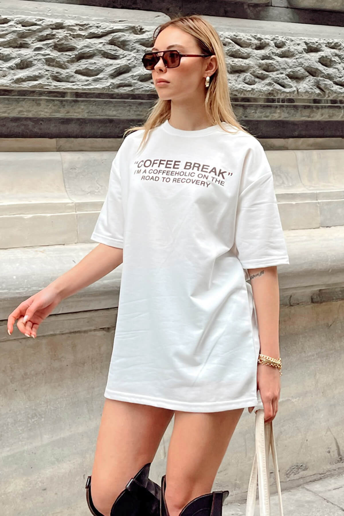 | Beyaz Coffe Baskılı Oversize Kadın Tshirt | |