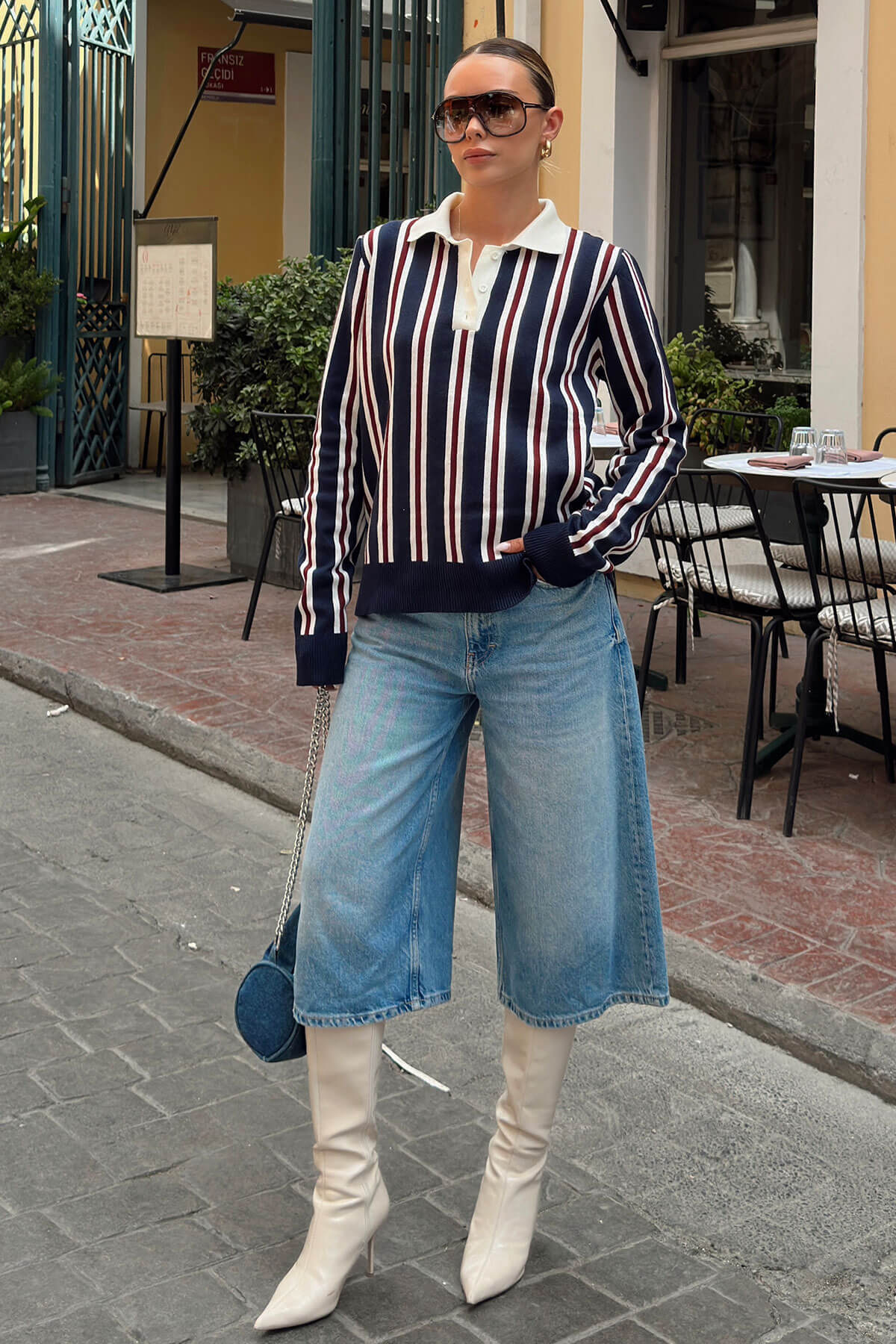 | Lacivert Dikey Çizgili Polo Yaka Örgü Kadın Triko Kazak | |