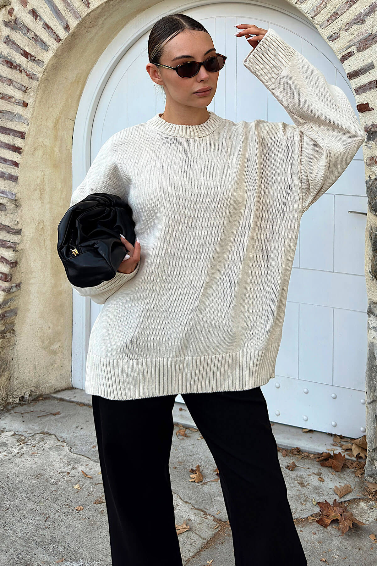 | Siyah Biscuit Bisiklet Yaka Oversize Kadın Triko Kazak | |