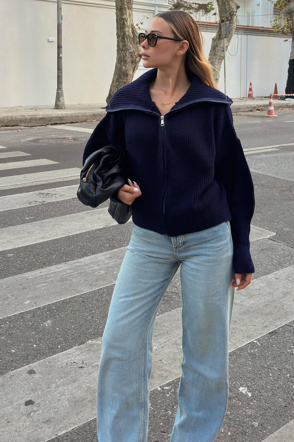 | Lacivert Yulia Fermuarlı Yaka Kadın Triko Crop Hırka | |