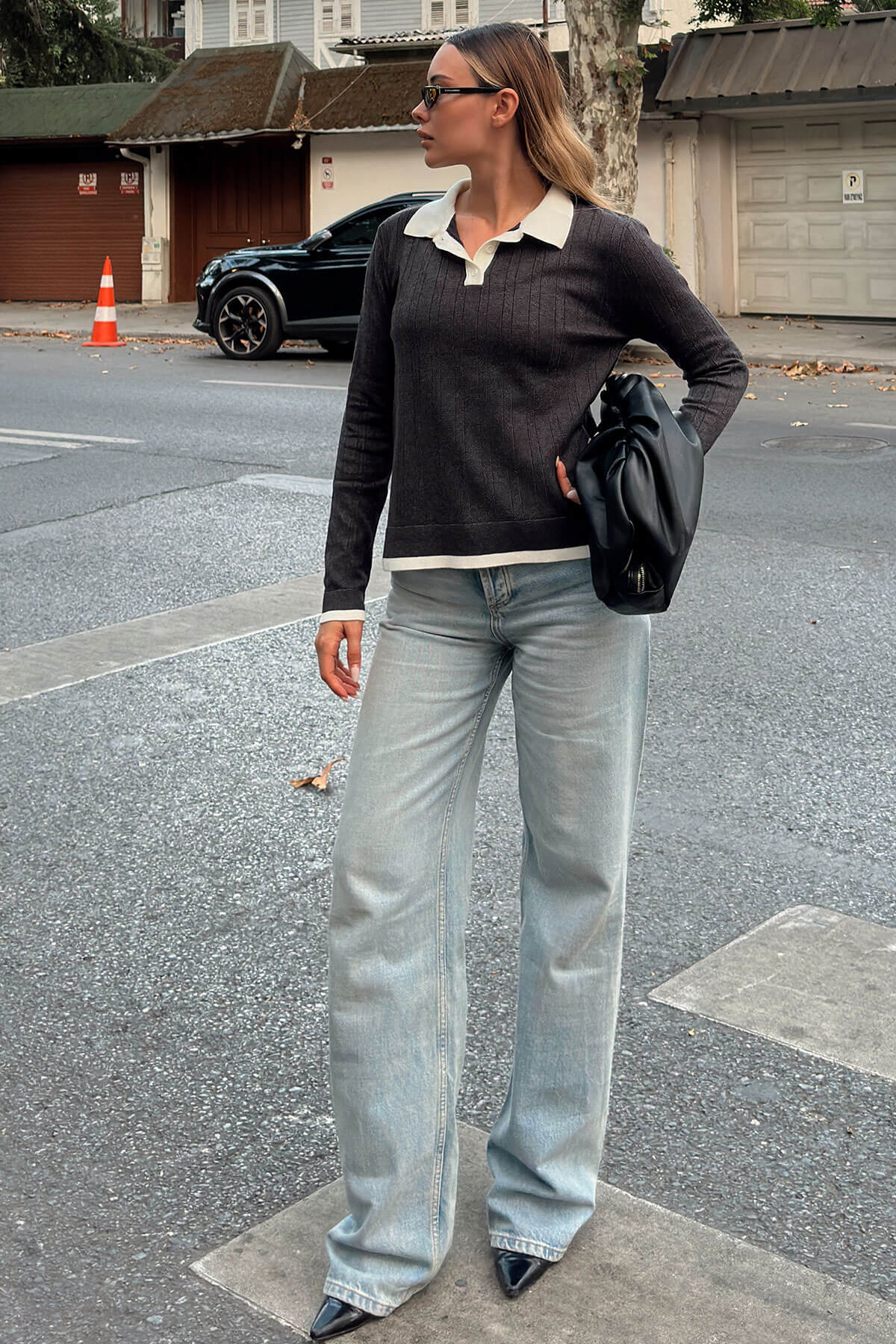 | Siyah Marie Polo Yaka Kadın Triko Bluz | |