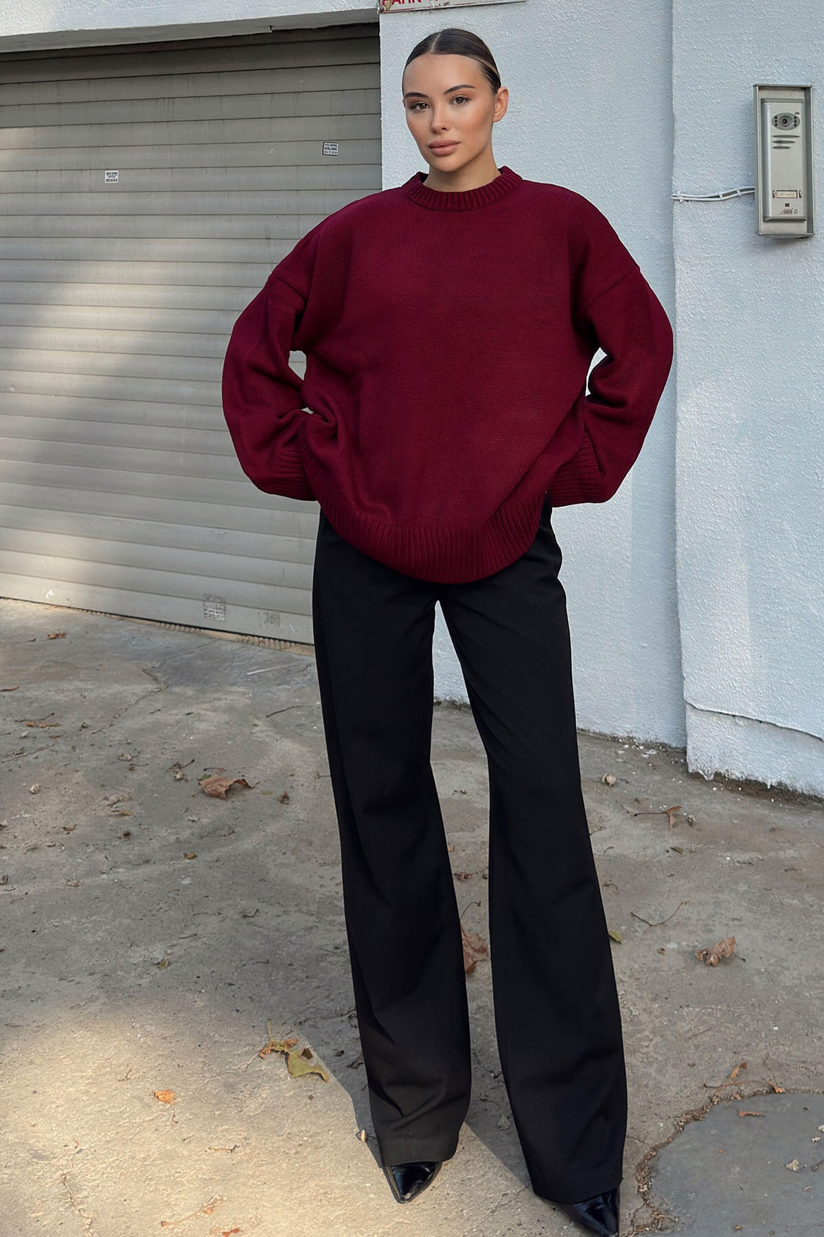 | Bordo Biscuit Bisiklet Yaka Oversize Kadın Triko Kazak | |