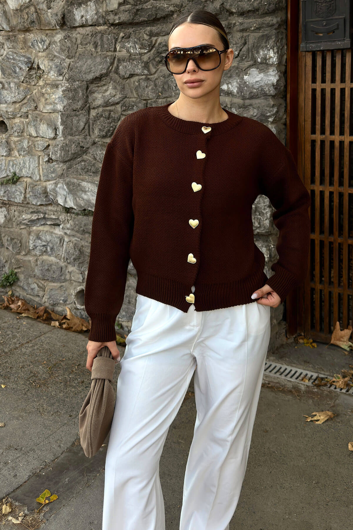 | Kahverengi Heart Gold Kalp Düğmeli Kadın Triko Hırka | |