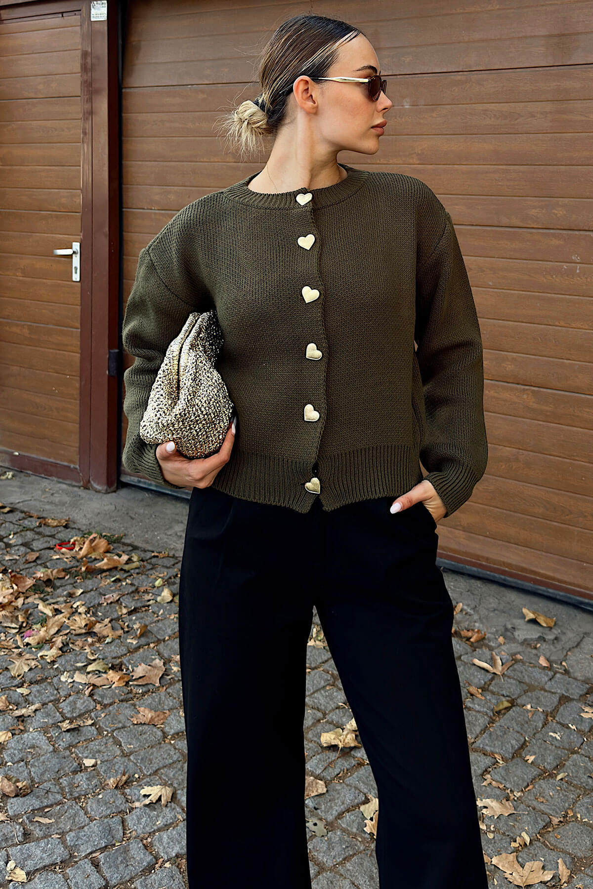 | Haki Heart Gold Kalp Düğmeli Kadın Triko Hırka | |