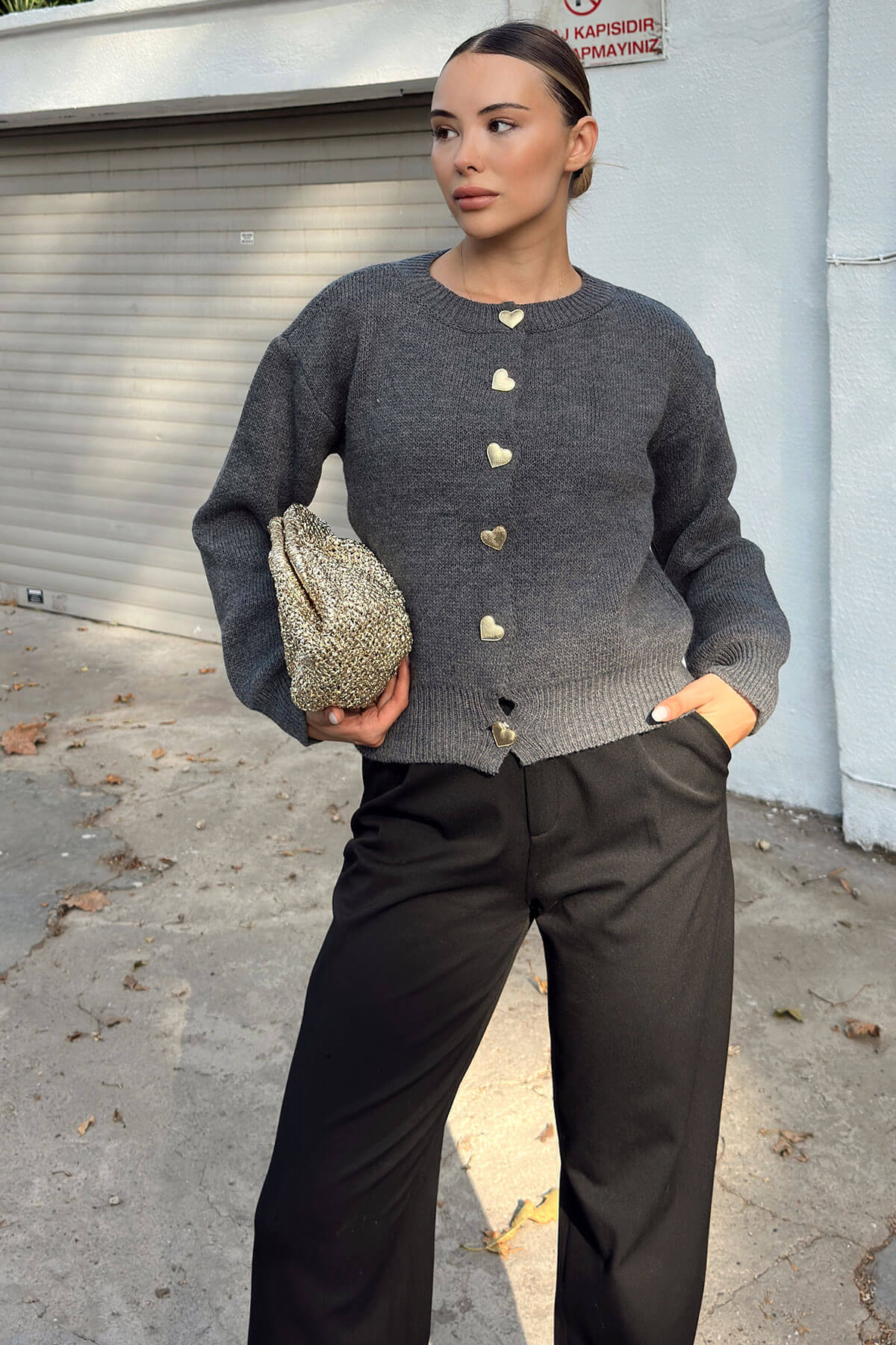 | Gri Heart Gold Kalp Düğmeli Kadın Triko Hırka | |