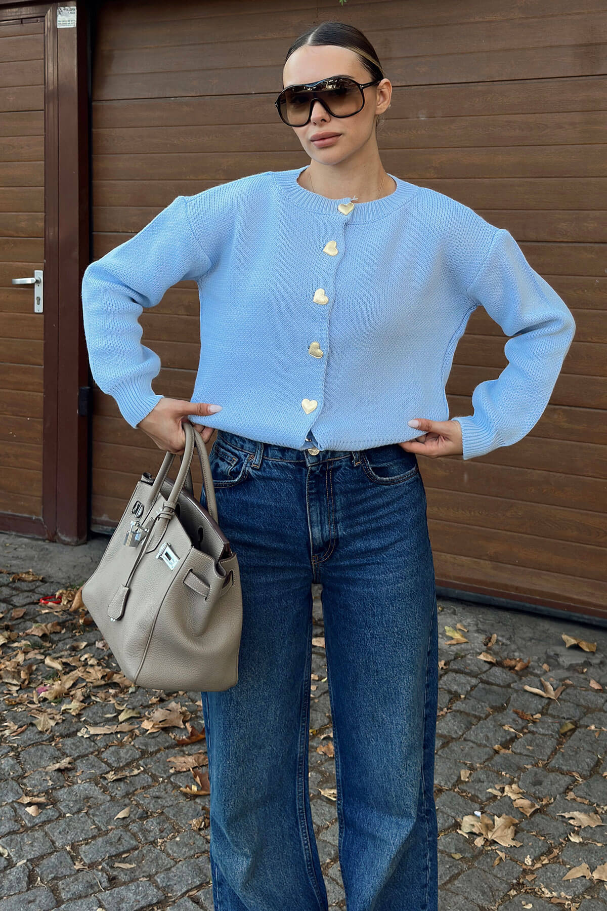 | Mavi Heart Gold Kalp Düğmeli Kadın Triko Hırka | |