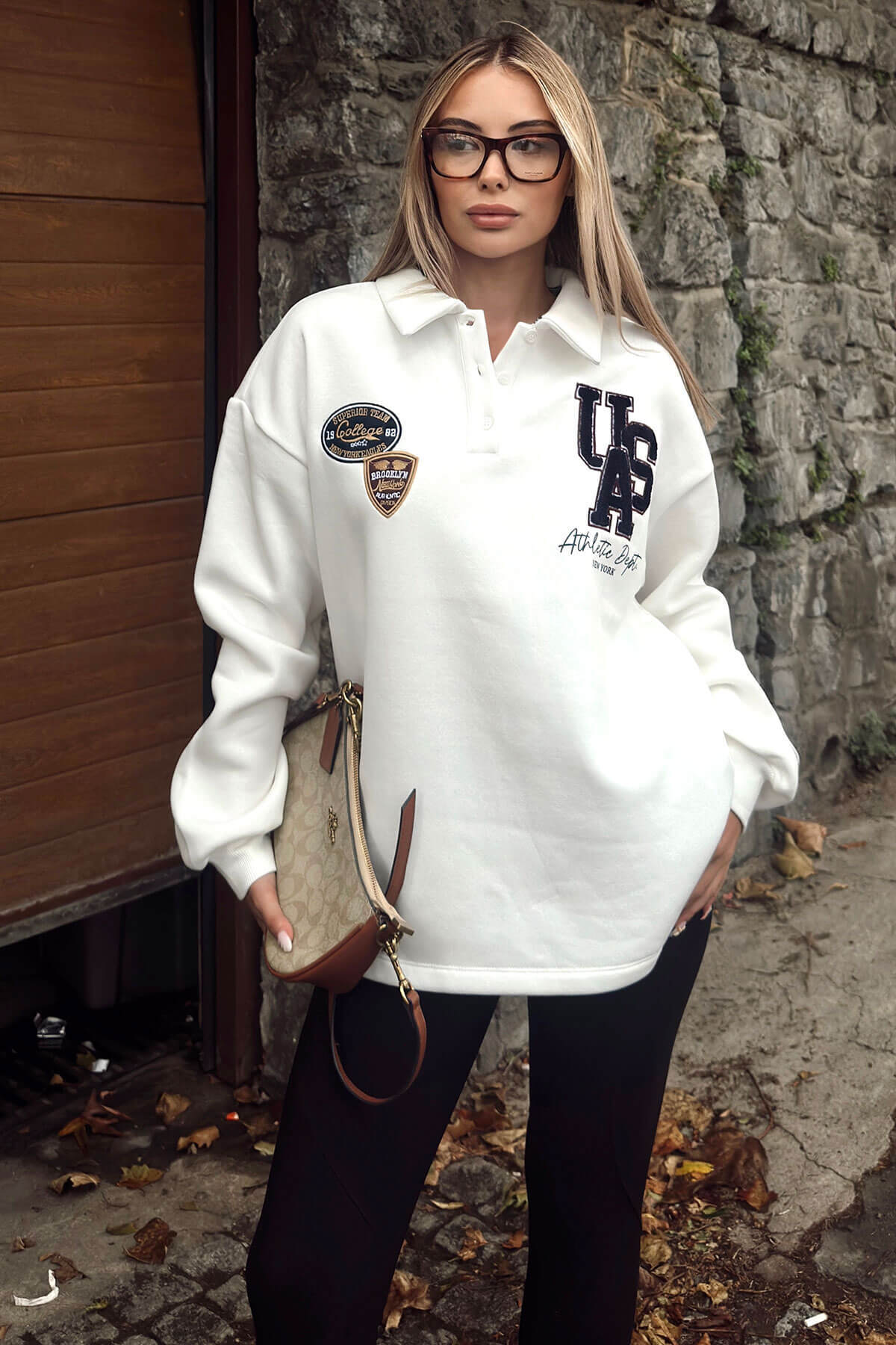 | Beyaz Athletic Nakışlı Polo Yaka Şardonlu Kadın Sweatshirt | |