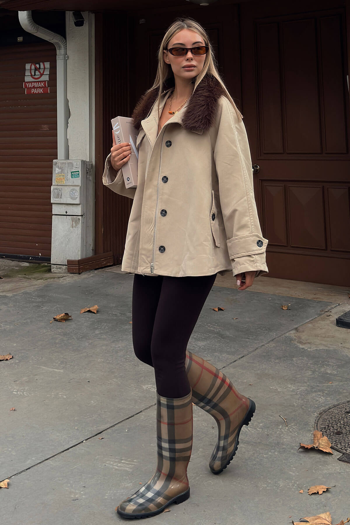 | Kahverengi Yakası Kürklü Manşet Ve Cep Detaylı Oversize Kadın Mont | |