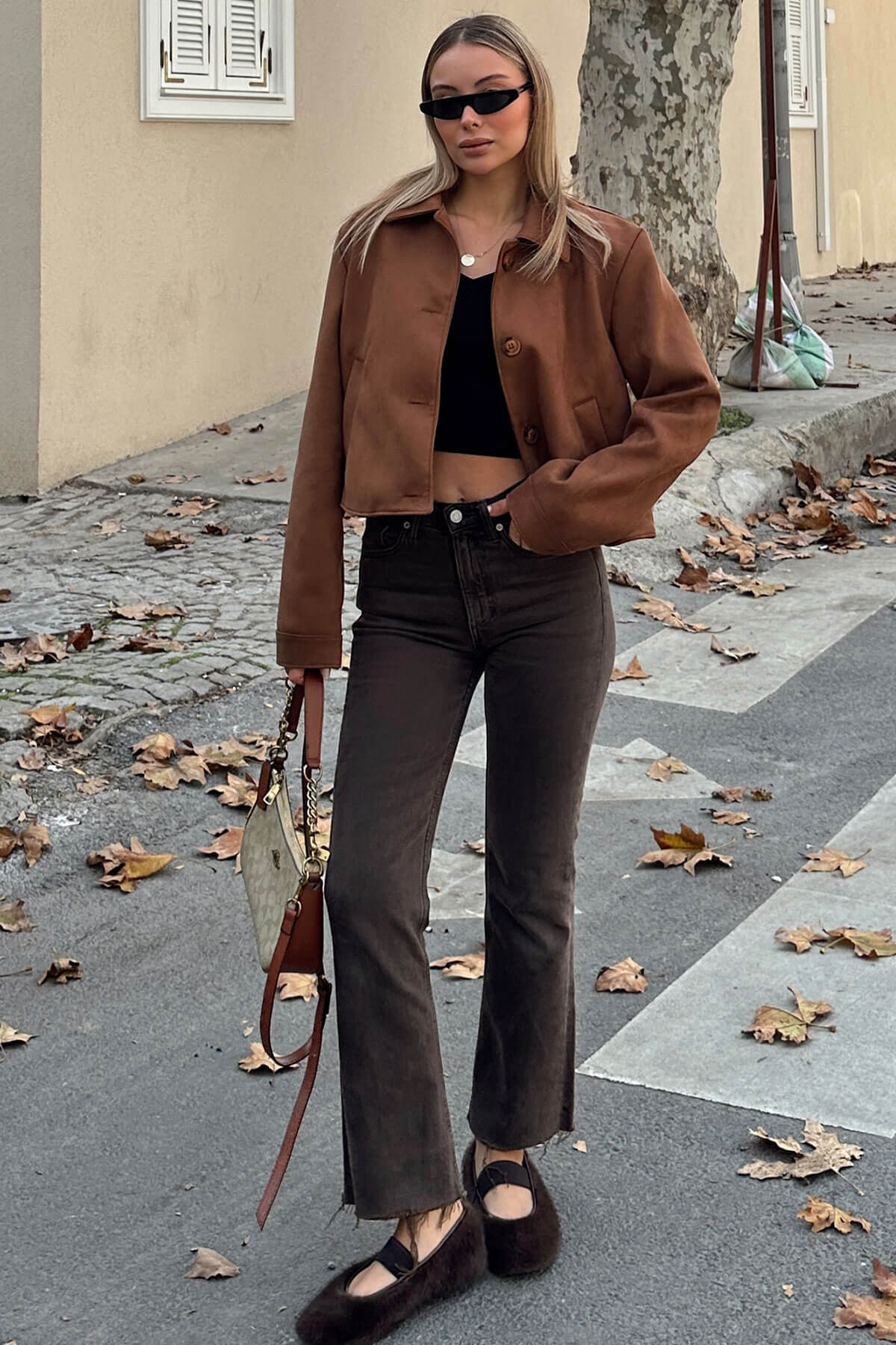 | Kahverengi Süet Polo Yaka Düğme Kapamalı Kadın Crop Mont | |