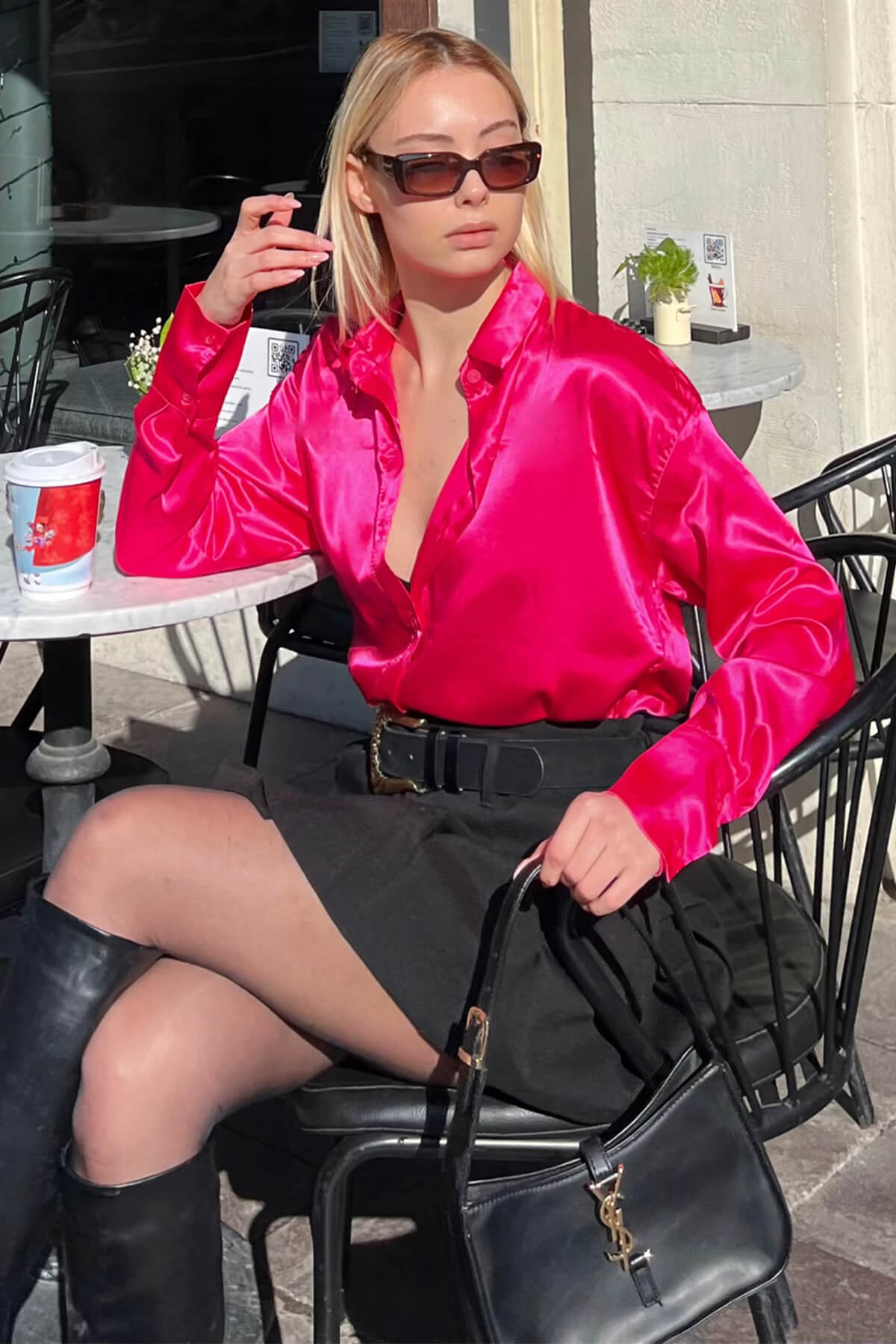 | Fuşya Manşet Detay Basic Saten Kadın Gömlek | |