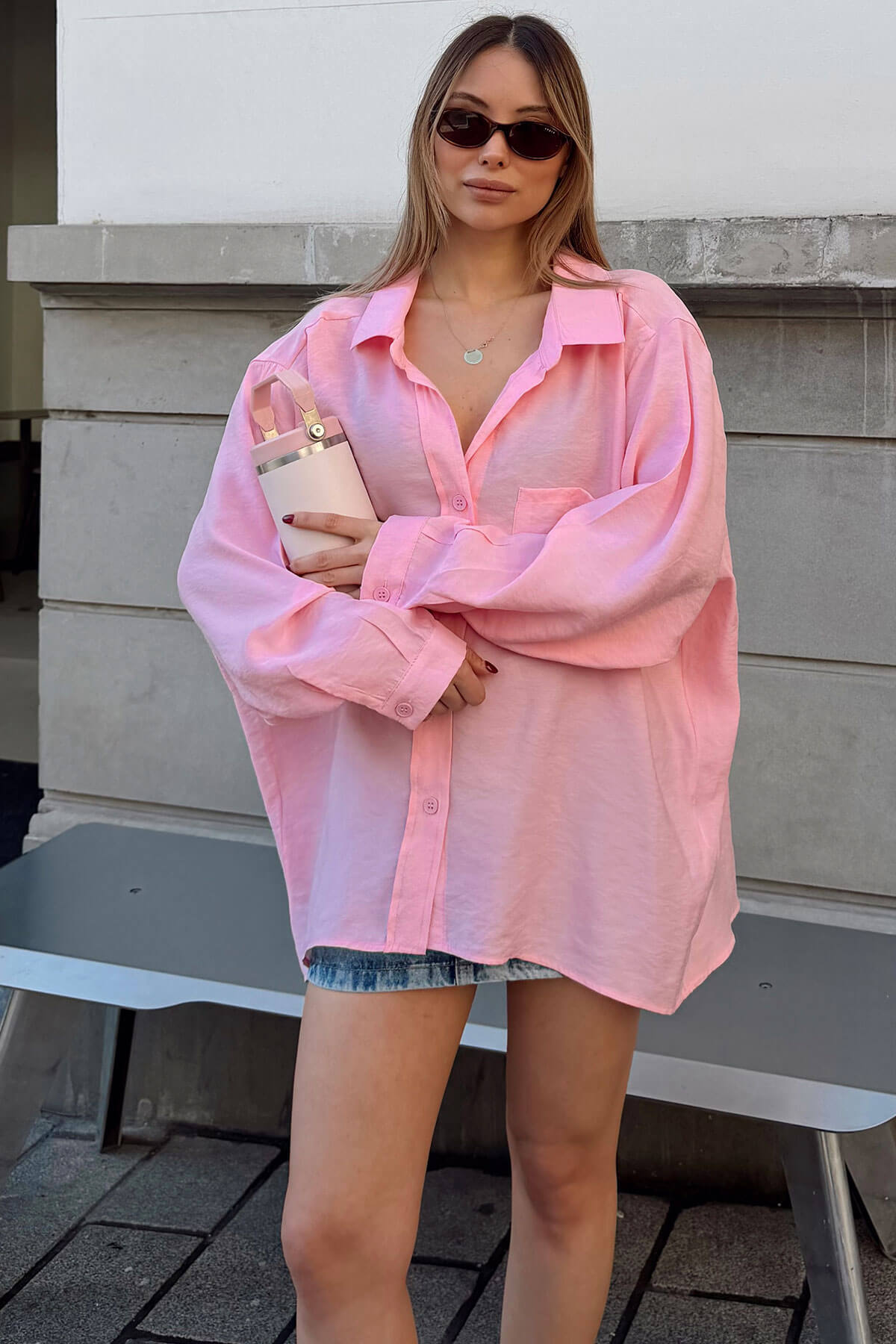 | Pembe Oversize Tek Cepli Rahat Kalıp Kadın Gömlek | |