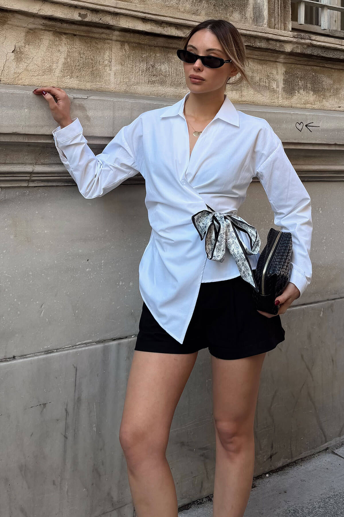 | Beyaz Kruvaze Fular Bağlamalı Beli Lastikli Kadın Gömlek | |