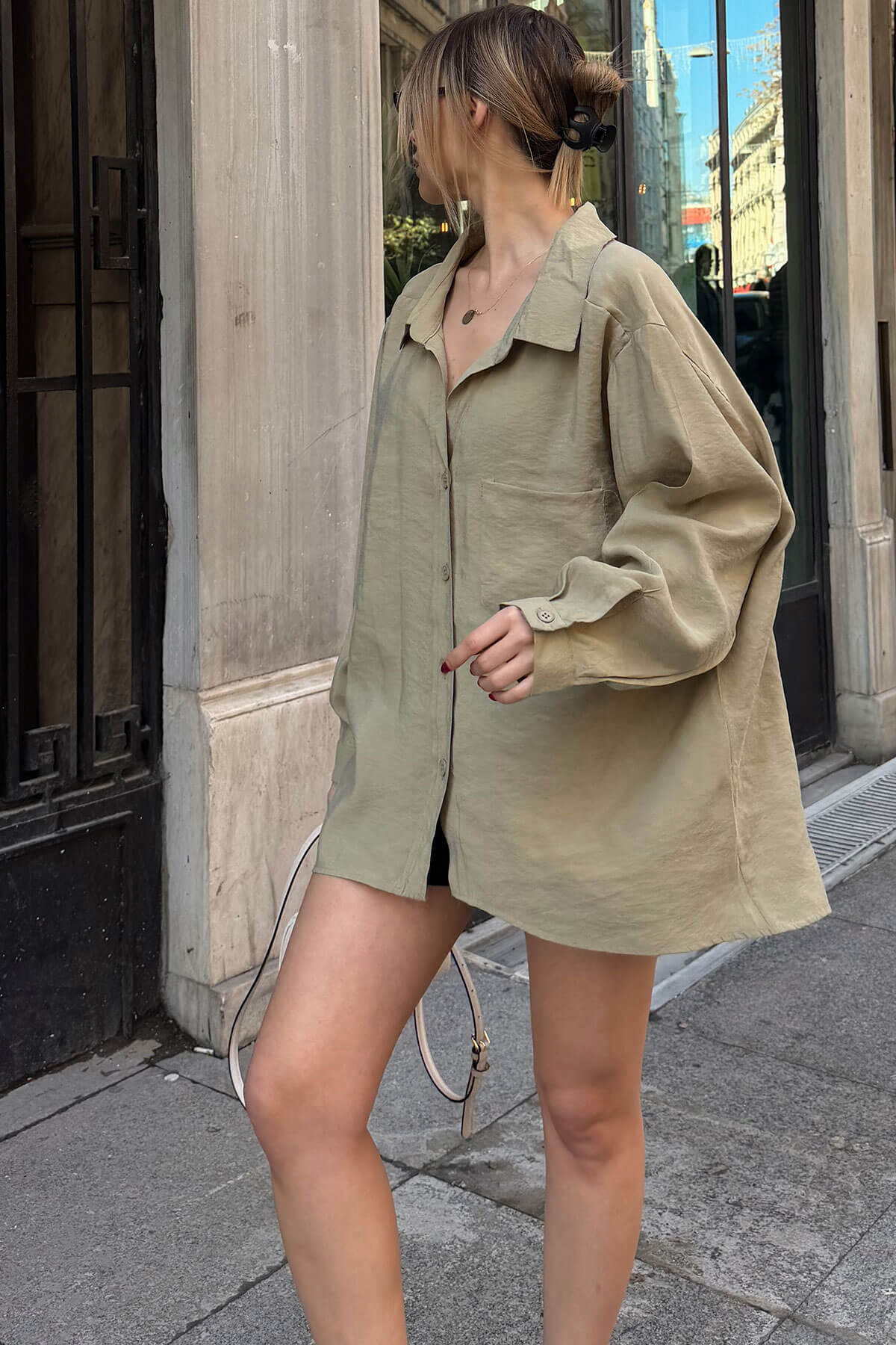 | Haki Oversize Tek Cepli Rahat Kalıp Kadın Gömlek | |
