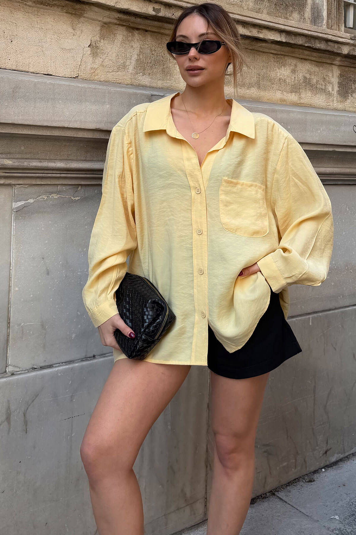 | Sarı Oversize Tek Cepli Rahat Kalıp Kadın Gömlek | |