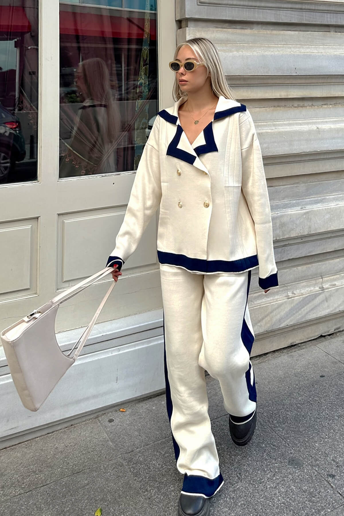 | Lacivert Yakası ve Paçası Fermuarlı Kazak-Pantolon Kadın Triko Alt-Üst Takım | |