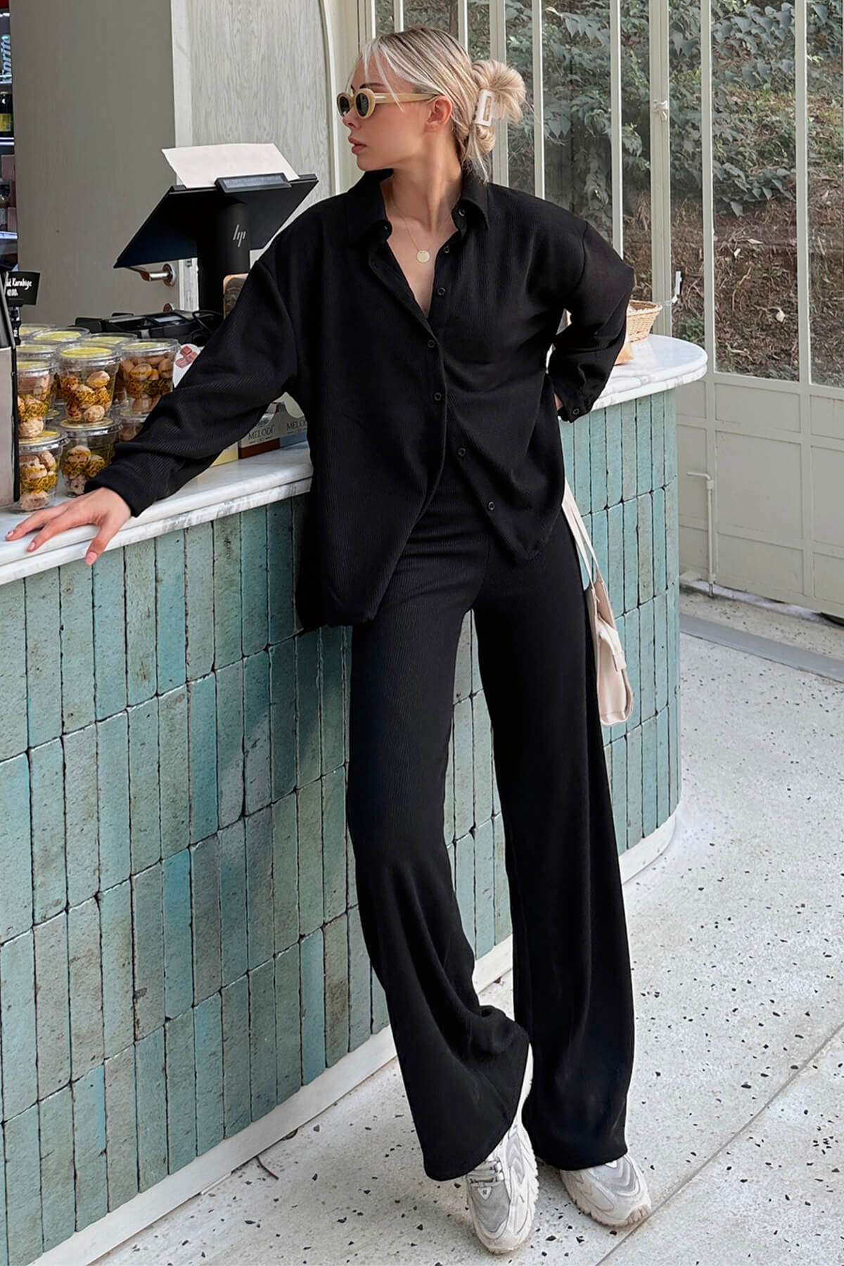 | Siyah Fine Fitilli Oversize Gömlek-Pantolon Kadın Alt-Üst Takım | |