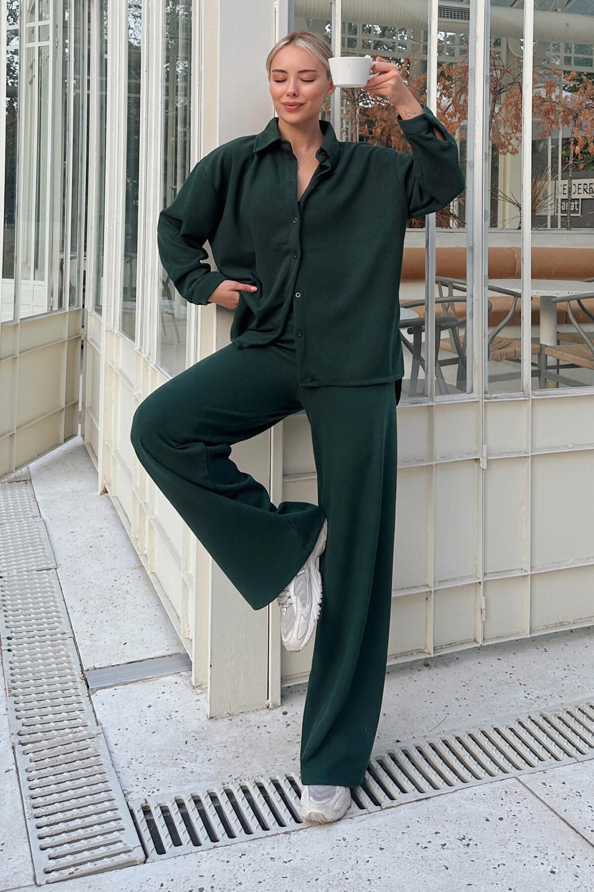 | Yeşil Fine Fitilli Oversize Gömlek-Pantolon Kadın Alt-Üst Takım | |