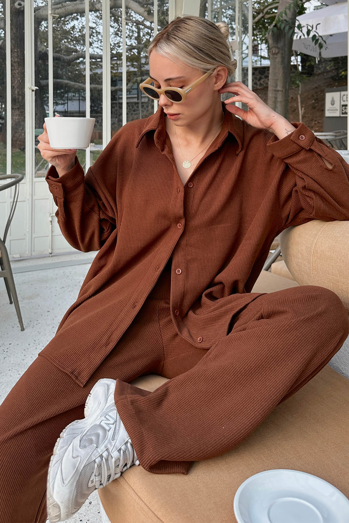 | Kahverengi Fine Fitilli Oversize Gömlek-Pantolon Kadın Alt-Üst Takım | |